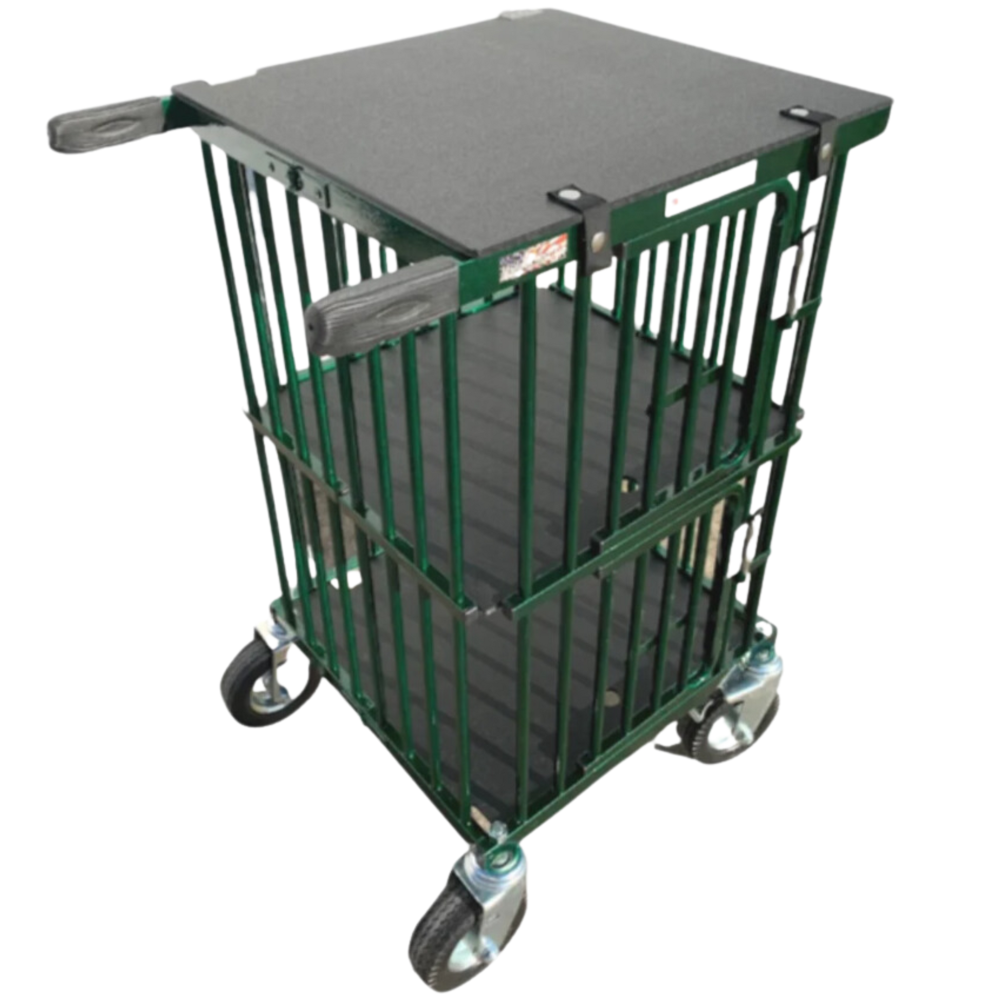 The Powder-coat finish is baked on in a 4-step process. The Trolley's lids, floors, and dividers are made of strong, recycled high-density polyethylene. The 6-inch wheels are foam-filled, making them flat-free.